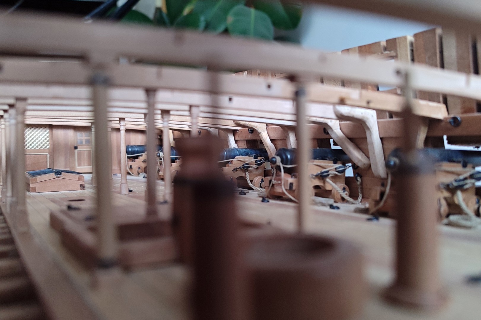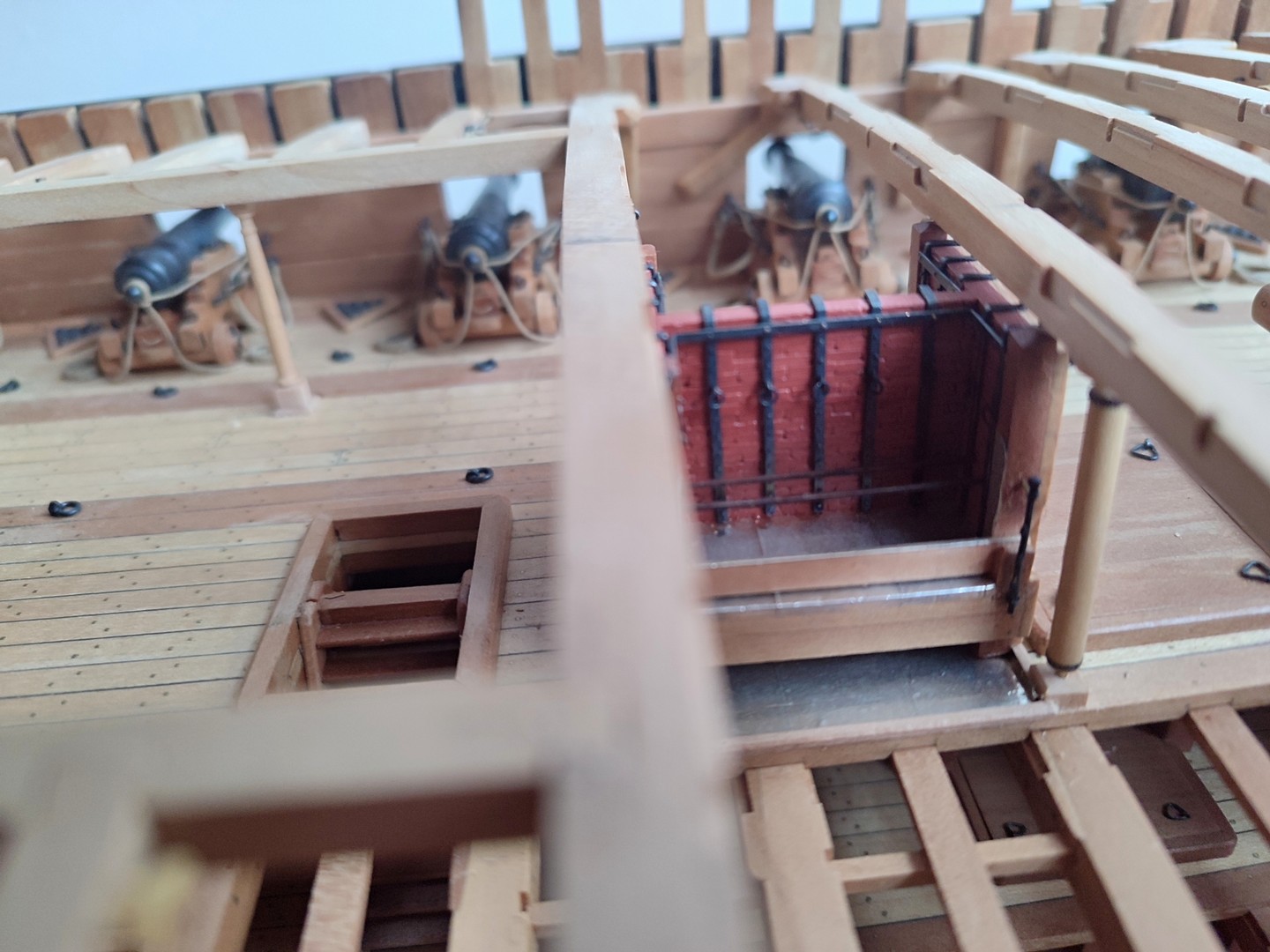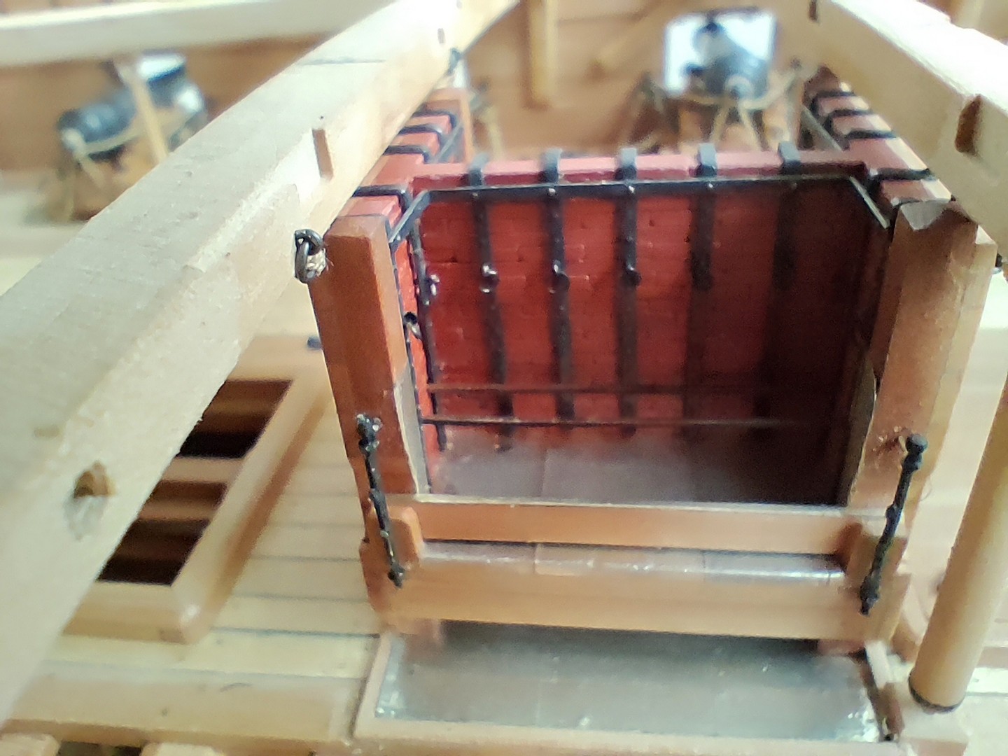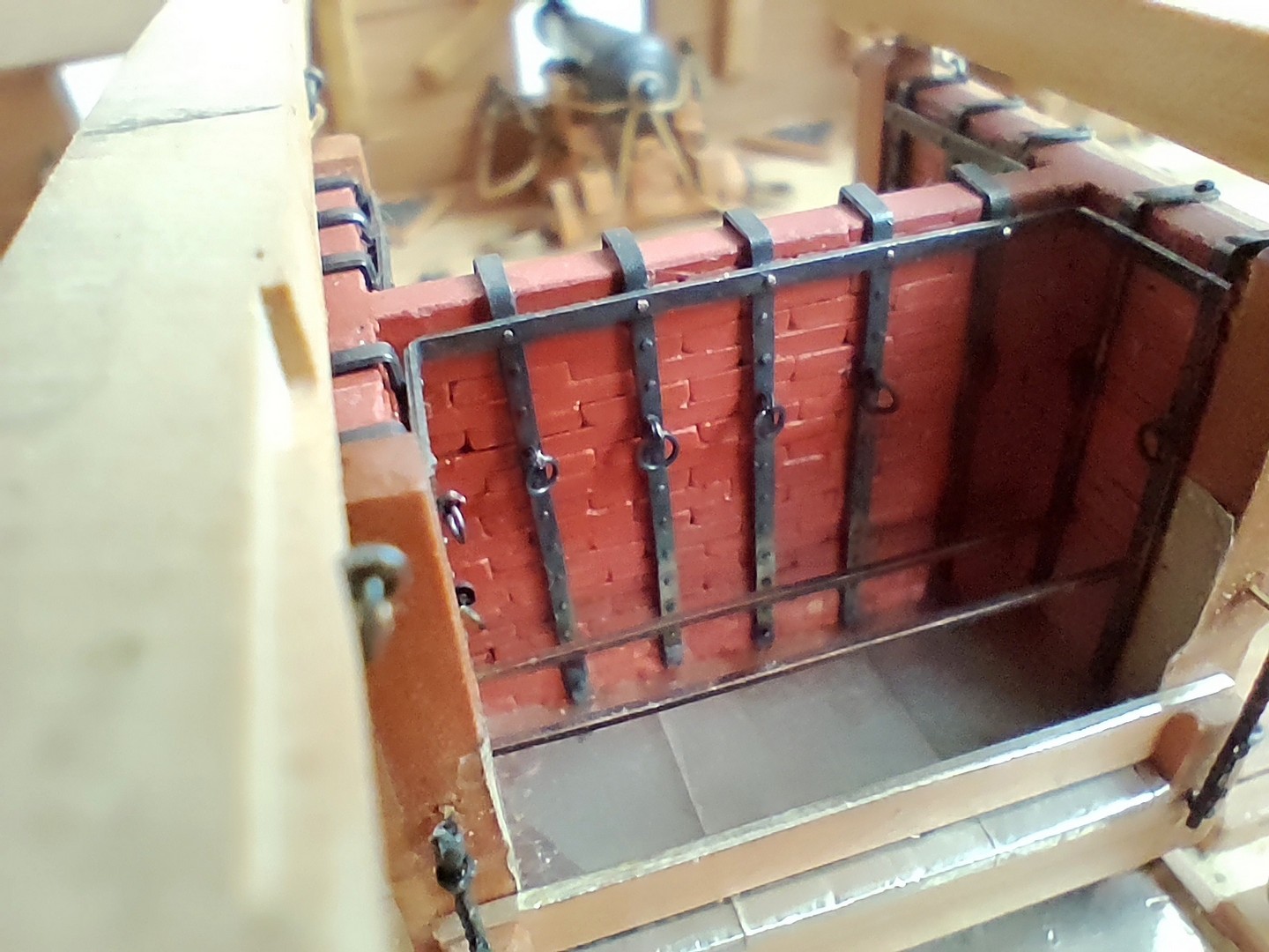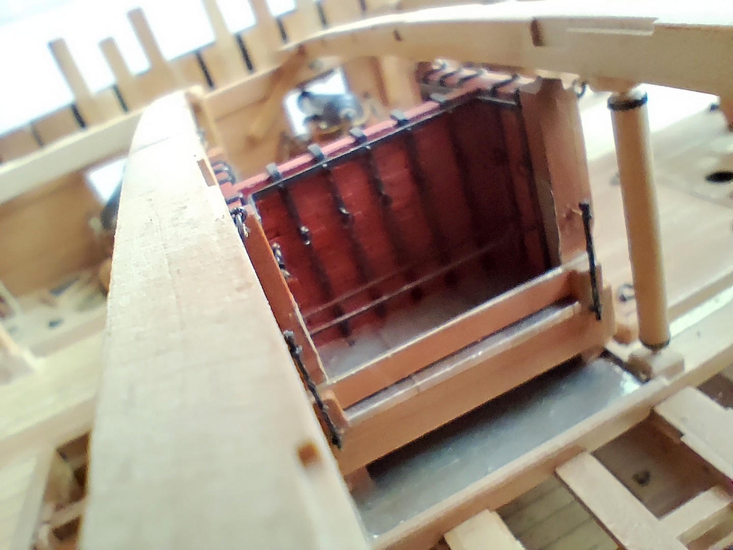 Začala výroba vnitřní vestavby - v zadní části u kýlu je místnost pro skladování střelného prachu jak v sudech, tak v kartuších, uložených v samostatných kójích. Je tam uzavřená šachta s prosklenými a zamřížovanými okny, kde byla zavěšená lampa pro osvětlení skladu.