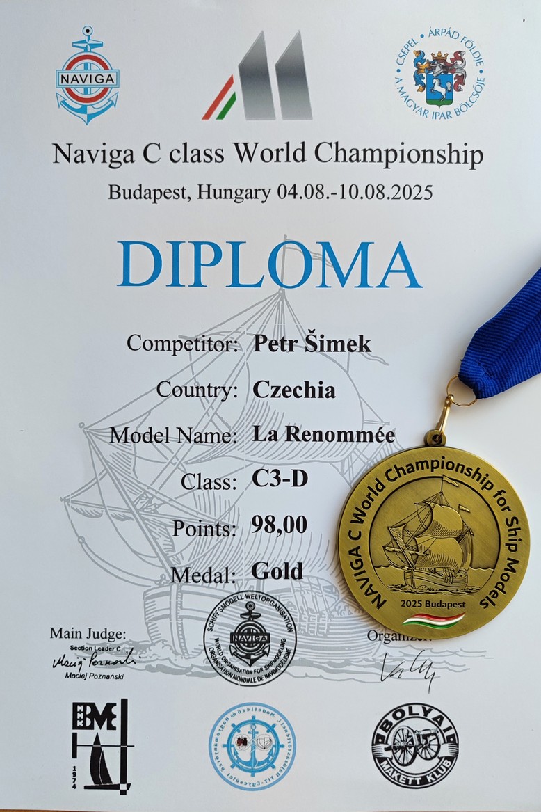 Model "La Renommée" na MS Budapest získal zlatou medaili a první místo ve své kategorii.